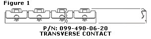 The need for two different items arises when considering method of deflection. Part number 099-490-06-20 may be compressed by applying force directly down onto the contact finger or by wiping across the length of the strip (transversely) as shown by the arrow in figure 1. Whereas, part number 099-485-06-20 may be compressed by applying force directly down onto the contact finger or by wiping along the length of the strip (longitudinally) as shown by the arrow in figure 4.